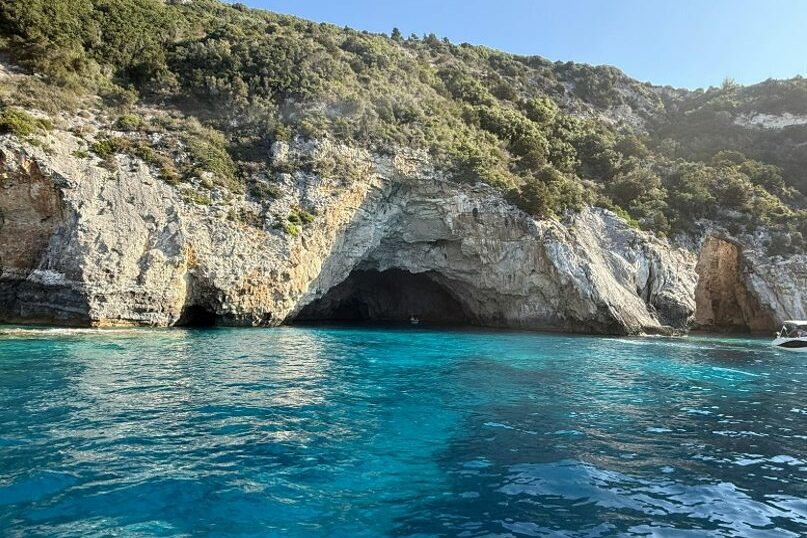 „Płynęliśmy wzdłuż imponujących klifów i podziwialiśmy Blue Caves – morskie groty o turkusowej wodzie, dostępne jedynie od strony morza. Zrobiliśmy przerwę na kąpiel i lunch na południu wyspy, aby nacieszyć się krajobrazem. Kolejne przepiękne kotwicowisko i doskonały posiłek na pokładzie, jak zawsze 😊”